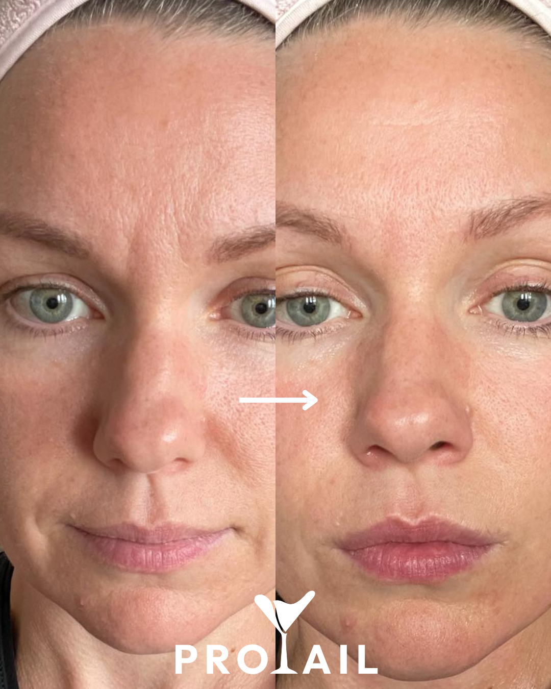 A textura é mais suave e o tom mais uniforme; a secura pós-treino diminuiu.