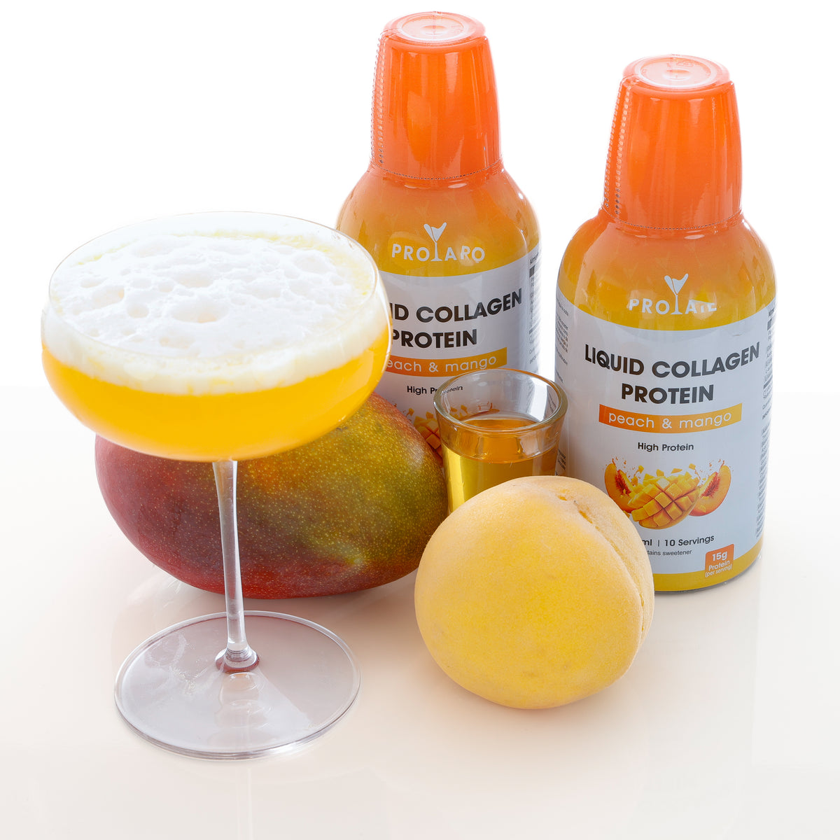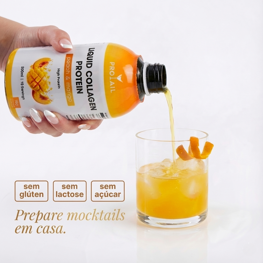 Aprecie o PROTAIL diretamente do copo de medição de 50 ml incluído ou dilua com água gelada, com ou sem gás. Também é perfeito para mocktails leves de colagénio.